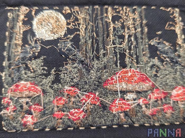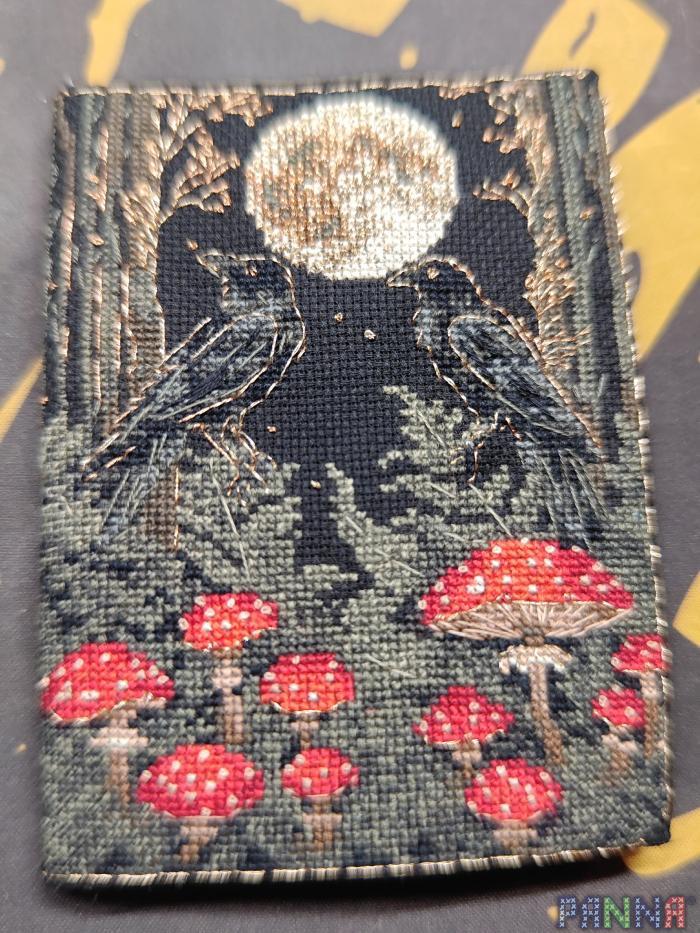 Набор был комплектован полностью, канва пришла черная. Ниток хватило прям с хорошим запасом Схема хорошая, все понятно. В первый раз делала бекстич и французские узелки, вкладыш с инструкцией очень помог. А вот про метод сшивания хотелось бы чтобы чуть больше расписали. Возможно помогла бы видео инструкция. Но вроде получилось сшить как задумывалось Нитки, канва и ткань хорошие, удобно было ничего не запутывалось. А вот металлик грубоват. Работала в первый раз с ним и не знаю все ли такие жесткие, но он буквально местами перетирался сам об себя, особенно в ф.узелках, металлическая часть стиралась и оставалась желтенькая ниточка на которую она была намотана. Пришлось привыкнуть, но потом вроде получалось аккуратно все сделать.