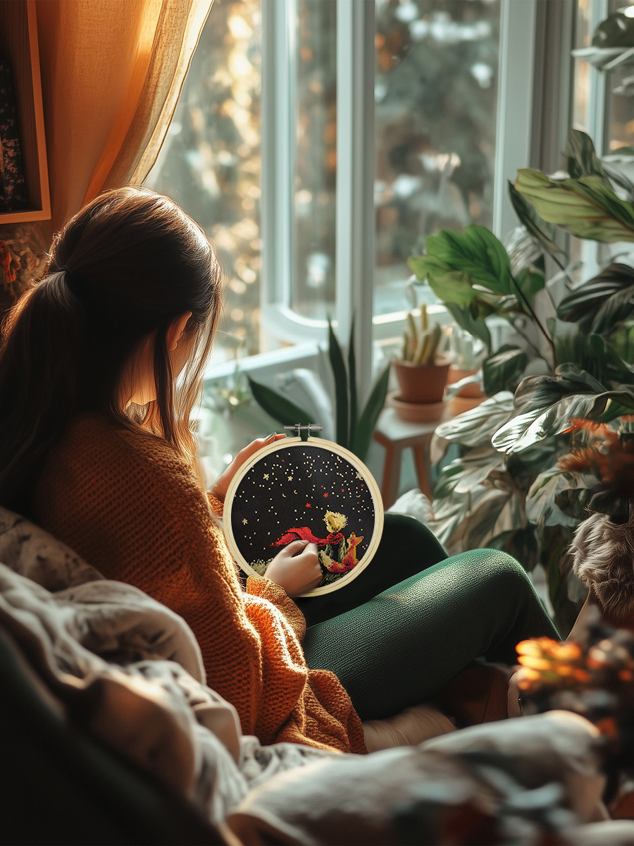 Вышивка с небольшим милым сюжетом отлично подойдет для украшения детской комнаты.