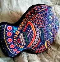 Состав набора: Аида 11, нитки мулине 16 цветов, игла, цветная схема, инструкция. Техника: частичная вышивка крестом в 4 нити. Про сам процесс: очень легкая вышивка, я ее делала на руках без пялец. Канва крупная, жесткая. Никаких проблем не возникало. Для придания дополнительной прочности с изнанки вышивку приклеила дублерином. Для задника использовала тёмно-синий бархат стрейч.Для наполнения: синтепух. В результате получилась замечательная декоративная подушка. Вышивалась в неспешном темпе месяца за три, сшивалась за пару часов. Рекомендую